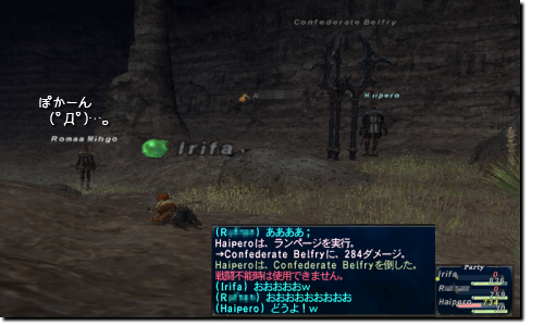 白ぷりけつ後、赤連続魔したもののロマーのHPががんがん無くなり+寝てたやつらが起き